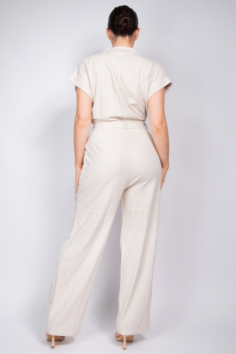 Pantalón palazzo confeccionado en una mezcla premium de rayón, lino y elastano que ofrece comodidad y elegancia. Cuenta con detalles de botones y cinturón ajustable para un look sofisticado y versátil. La composición de 70% rayón, 27% lino y 3% spandex garantiza transpirabilidad y movimiento natural, perfecto para cualquier ocasión.