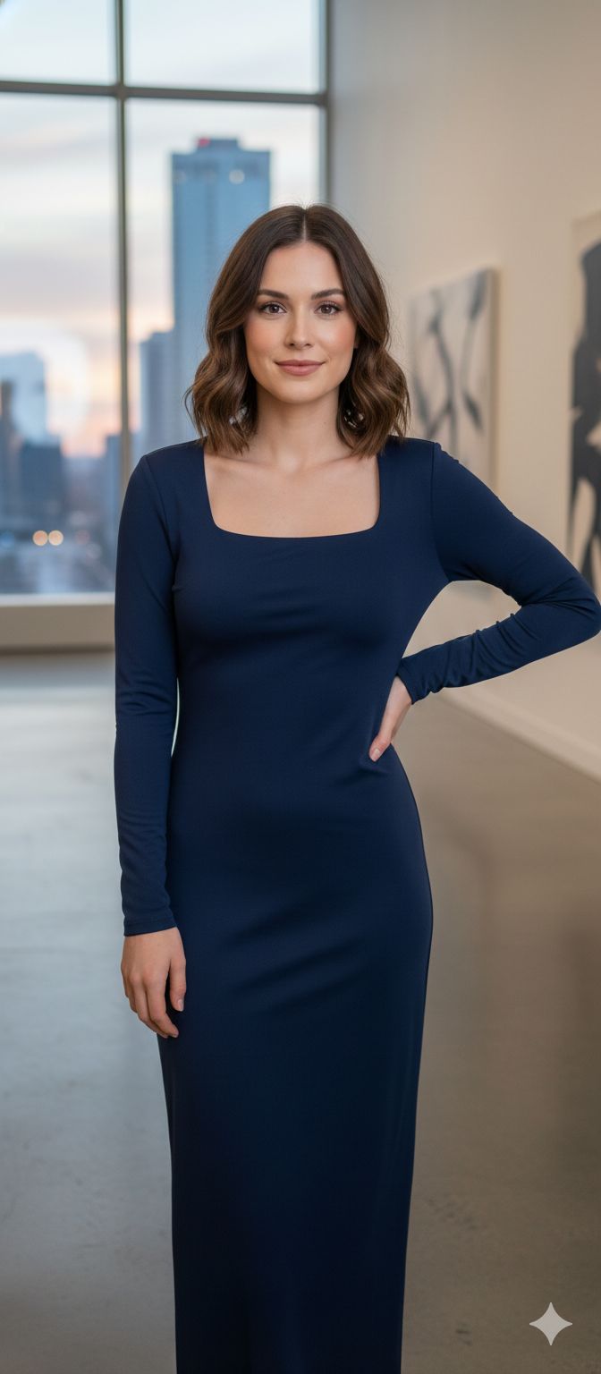 Descubre la comodidad y elegancia en un solo diseño. Este vestido largo de manga larga presenta un escote cuadrado que realza tu figura de manera sofisticada. Confeccionado con una mezcla premium de rayón, nylon y elastano, ofrece una caída fluida y movimiento natural que se adapta perfectamente a tu cuerpo. Ideal para cualquier ocasión casual, combina estilo atemporal con la practicidad que buscas en tu guardarropa diario.