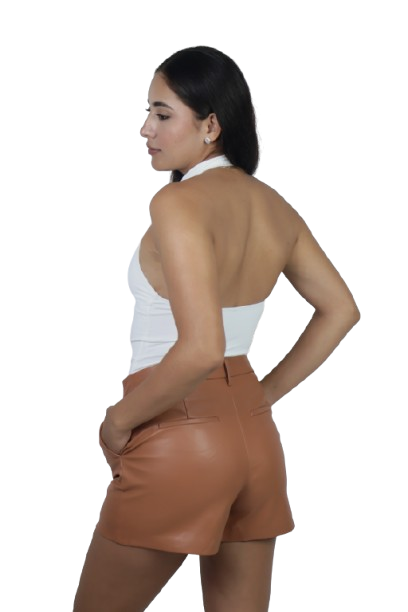 Descubre la elegancia en una sola prenda: pantiblusa con cuello halter que realza tu figura y espalda descubierta para un look sofisticado. Confeccionada en una mezcla premium de rayón, nylon y elastano, ofrece comodidad y movimiento sin comprometer el estilo. Perfecta para ocasiones especiales o para elevar tu día a día con un toque de distinción.